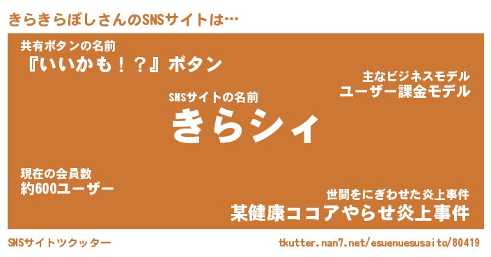 | ヘコむあだ名 | 『きらもー』『酢こんぶ』『きら太郎』 |