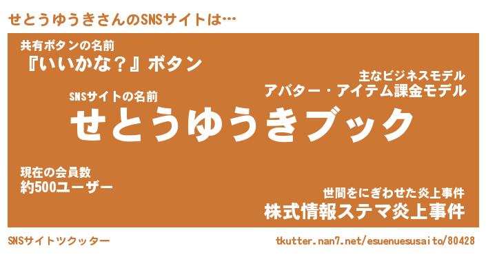 | 肩書あだ名 | 『せとうゆうきCEO』『せとうゆうき大統領』 |