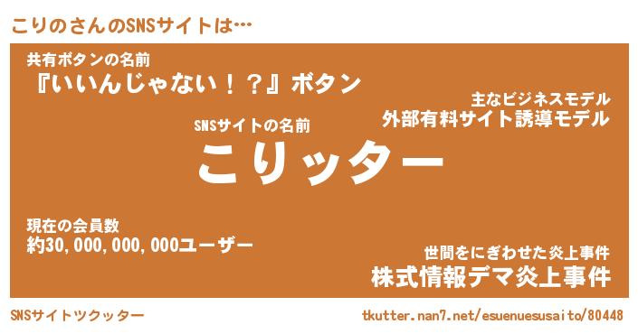 | 胡散臭い通販商品みたいなあだ名 | 『億万長者になれるブレスレット…その名も「こりの」』 |