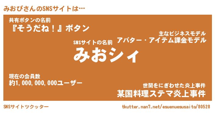 | 胡散臭い通販商品みたいなあだ名 | 『必ず成功するブレスレット…その名も「みおぴ」』 |
