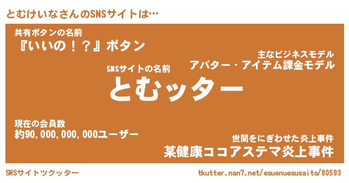 | 胡散臭い通販商品みたいなあだ名 | 『億万長者になれる霊験あらたかなお札…その名も「とむけいな」』 |