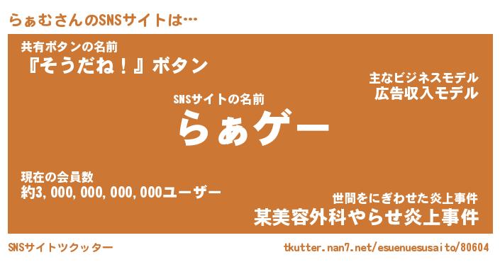 | ファンタジー風あだ名 | 『ラァフェル』『エターナルラァムー』 |