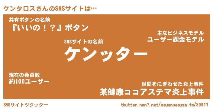 | 胡散臭い通販商品みたいなあだ名 | 『億万長者になれるブレスレット…その名も「ケンタロス」』 |