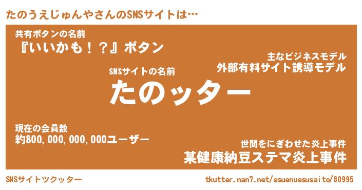 | 肩書あだ名 | 『たのうえじゅんや店長』 |