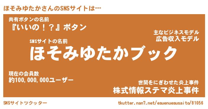 | 肩書あだ名 | 『ほそみゆたかCEO』『ほそみゆたか大統領』 |