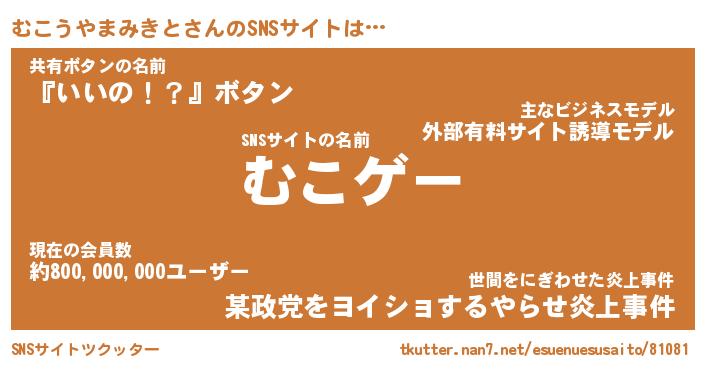 | 肩書あだ名 | 『むこうやまみきと社長』 |