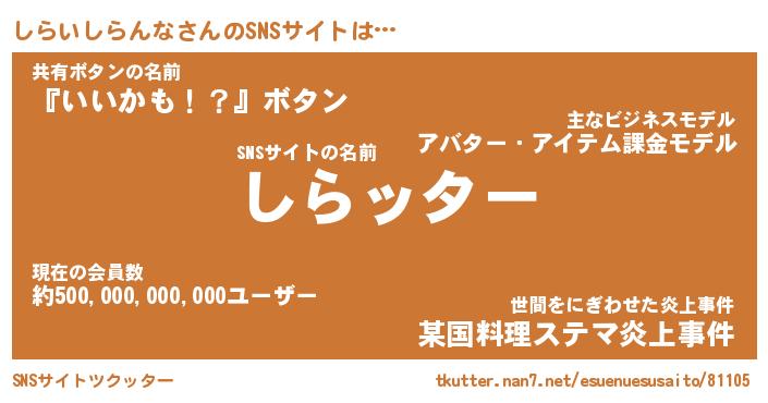 | 胡散臭い通販商品みたいなあだ名 | 『億万長者になれる水晶球…その名も「しらいしらんな」』 |
