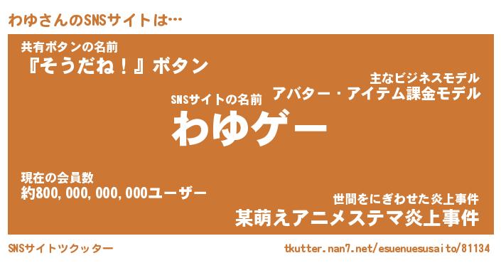 | ヘコむあだ名 | 『わゆっふぃ~』『つくし』『わゆお』 |