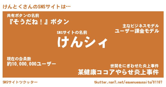 | ヘコむあだ名 | 『けんにゅー』『酢こんぶ』 |