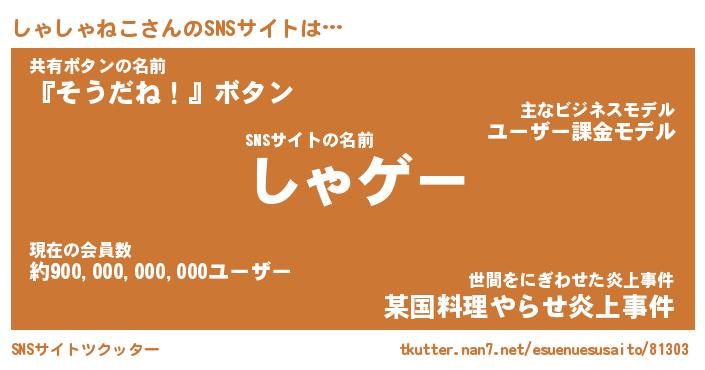 | 伝説のあだ名 | 『伝説のスナイパーしゃしゃねこ』 |