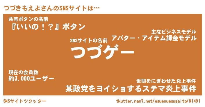 | ヒーロー風カッコイイあだ名 | 『スーパーツヅキモエヨ』『暗黒騎士ツヅ』 |