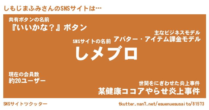 | 肩書あだ名 | 『しもじまふみCEO』『しもじまふみ班長』 |
