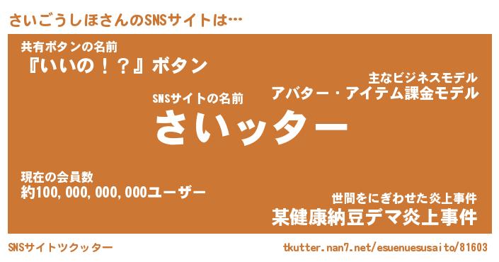 | 胡散臭い通販商品みたいなあだ名 | 『億万長者になれるブレスレット…その名も「さいごうしほ」』 |