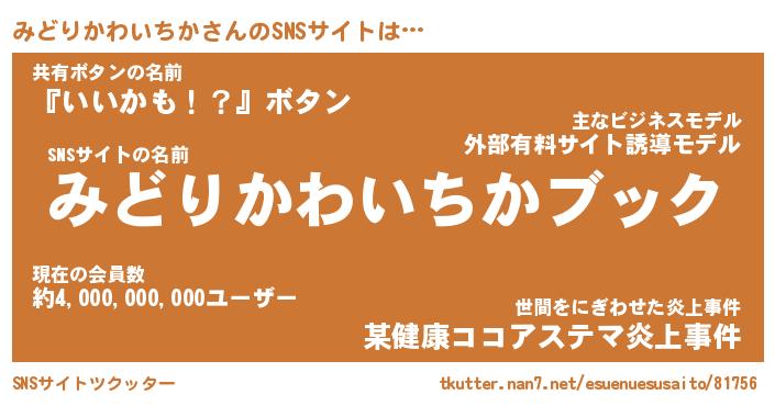 | 肩書あだ名 | 『みどりかわいちかCEO』 |
