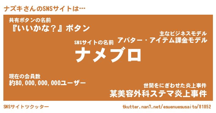 | 意味不明あだ名 | 『ペロリンナズキ』『ナズキフォーエバー』 |
