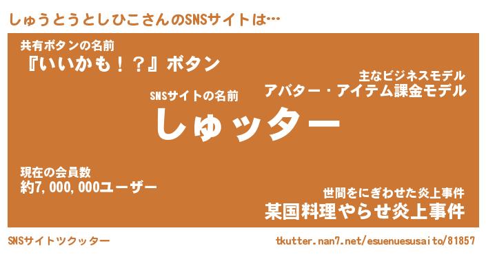 | 胡散臭い通販商品みたいなあだ名 | 『億万長者になれる水晶球…その名も「しゅうとうとしひこ」』 |