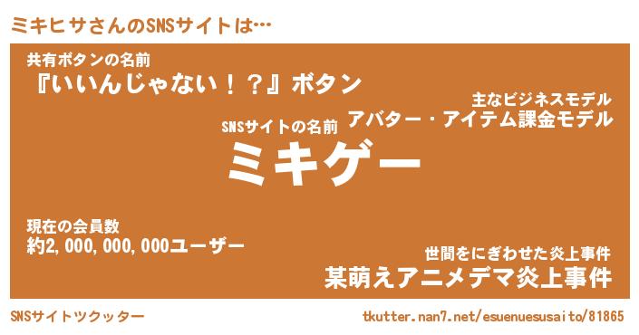 | 肩書あだ名 | 『ミキヒサ御曹司』『ミキヒサ国家主席』 |