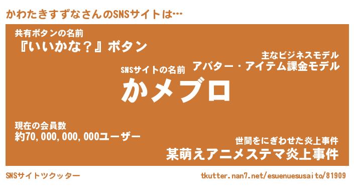 | 肩書あだ名 | 『かわたきすずな社長』 |