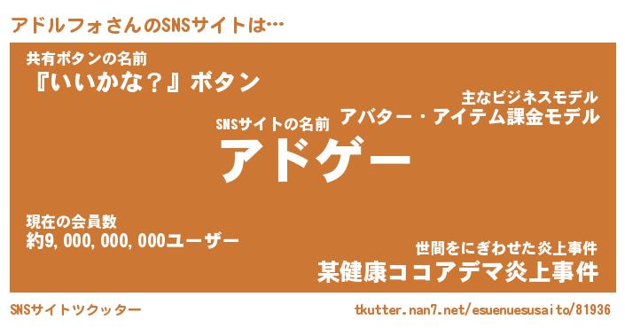 | ヒーロー風カッコイイあだ名 | 『スーパーアドルフォ』『幻影騎士アド』 |