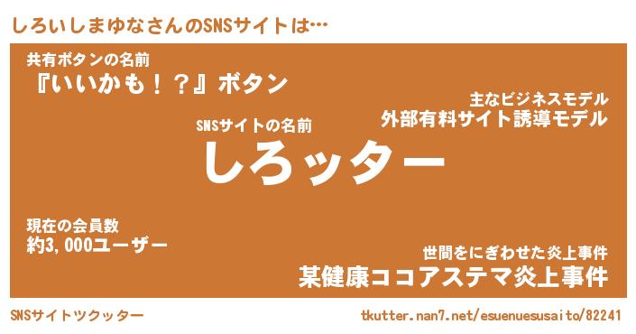 | 伝説のあだ名 | 『封印されしスナイパーしろいしまゆな』 |
