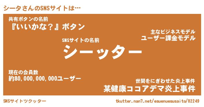 | 男性向けラノベタイトル風あだ名 | 『シータアートオンライン』 |