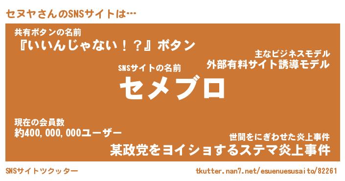 | ヘコむあだ名 | 『セヌにゅー』『牛乳』『セヌお』 |