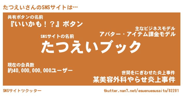 | 意味不明あだ名 | 『ペロリンたつえい』『永久保存たつえい』 |