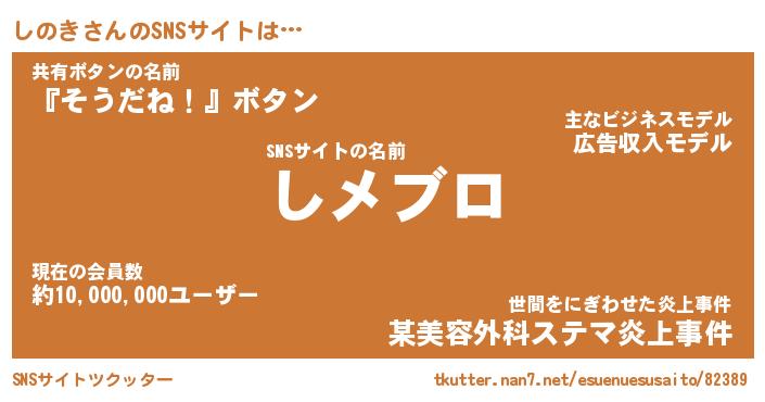 | 男性向けラノベタイトル風あだ名 | 『シノキアートオンライン』 |