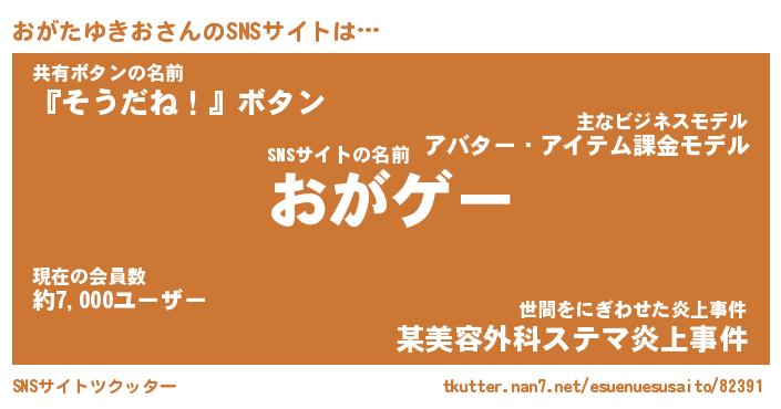 | 肩書あだ名 | 『おがたゆきおCEO』『おがたゆきお大統領』 |
