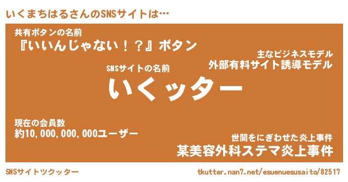 | 胡散臭い通販商品みたいなあだ名 | 『億万長者になれるブレスレット…その名も「いくまちはる」』 |