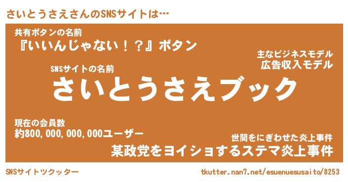 | 肩書あだ名 | 『さいとうさえ社長』『さいとうさえ校長』 |