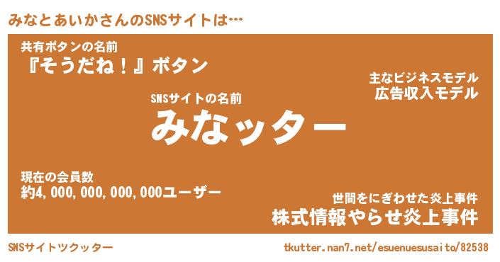 | ヘコむあだ名 | 『みなにゅー』『なまこ酢』 |