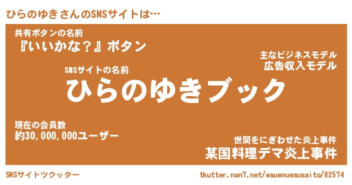 | 肩書あだ名 | 『ひらのゆきCEO』『ひらのゆき大統領』 |
