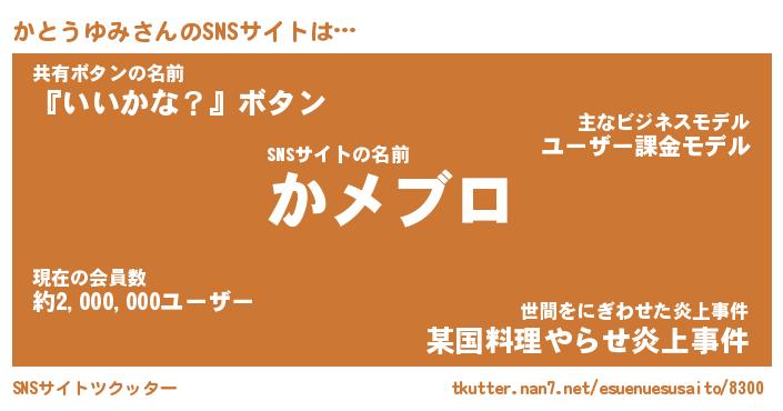 | 肩書あだ名 | 『かとうゆみ店長』『かとうゆみ国家主席』 |