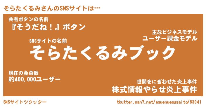 | 胡散臭い通販商品みたいなあだ名 | 『億万長者になれるブレスレット…その名も「そらたくるみ」』 |