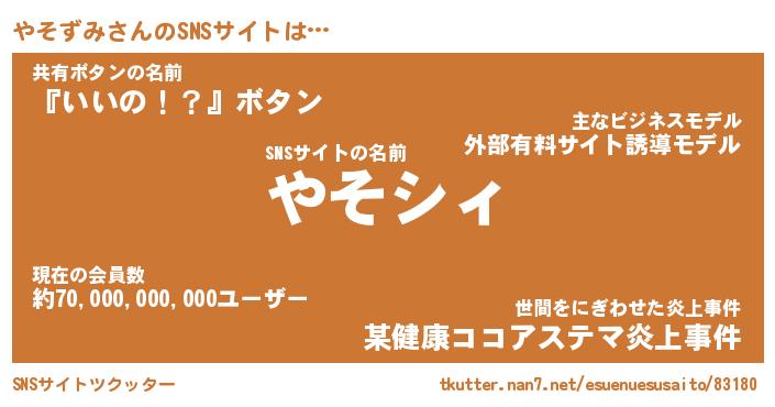 | ファンタジー風あだ名 | 『ヤソフェル』『エターナルヤソズミー』 |