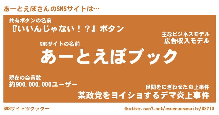 | 肩書あだ名 | 『あーとえぼ店長』『あーとえぼ大統領』 |