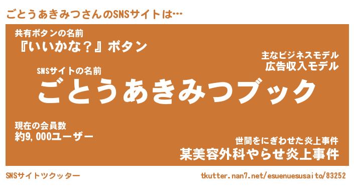 | 伝説のあだ名 | 『封印されし傭兵ごとうあきみつ』 |