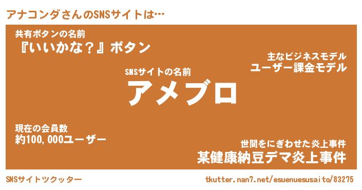 | 男性向けラノベタイトル風あだ名 | 『アナコンダアートオンライン』 |