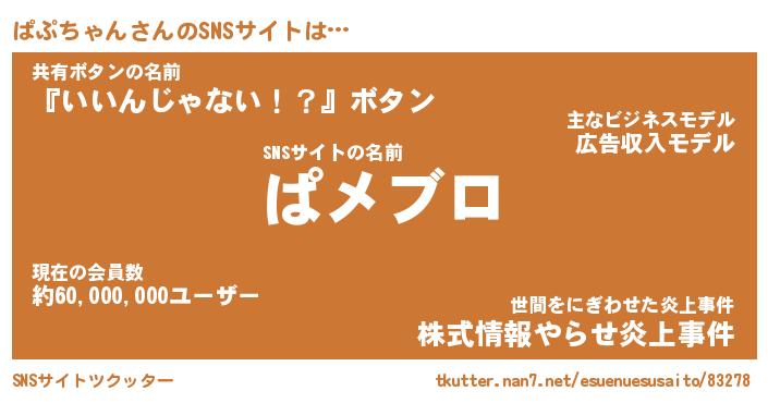 | 肩書あだ名 | 『ぱぷちゃん店長』『ぱぷちゃん総理大臣』 |