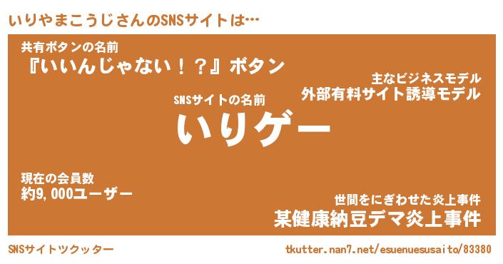 | 男性向けラノベタイトル風あだ名 | 『いりやまこうじの憂鬱』 |