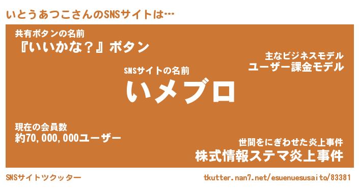 | 肩書あだ名 | 『いとうあつこ社長令嬢』 |