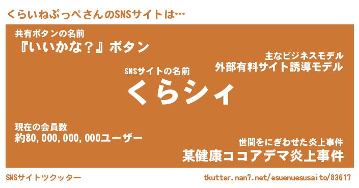 | 肩書あだ名 | 『くらいねぷっぺ社長』 |