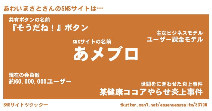 | 肩書あだ名 | 『あわいまさとCEO』『あわいまさと塾長』 |