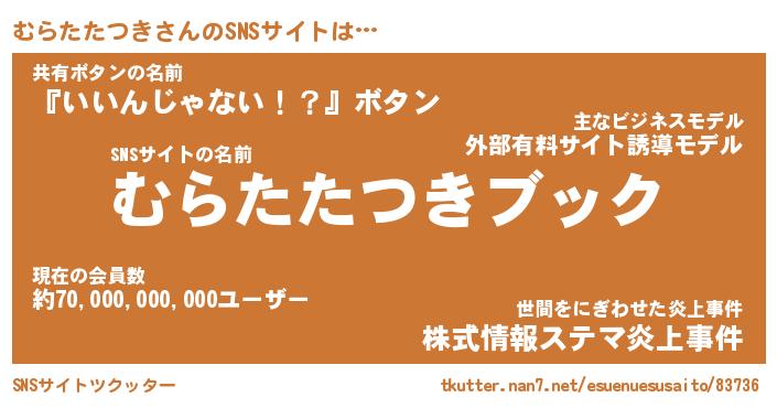 | 伝説のあだ名 | 『封印されしスナイパーむらたたつき』 |