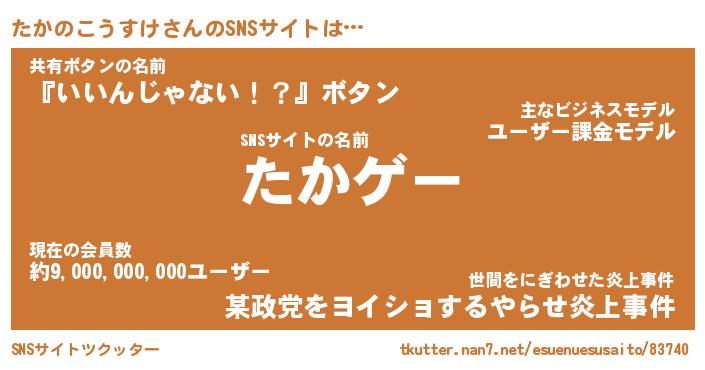 | 胡散臭い通販商品みたいなあだ名 | 『必ず成功する霊験あらたかなお札…その名も「たかのこうすけ」』 |