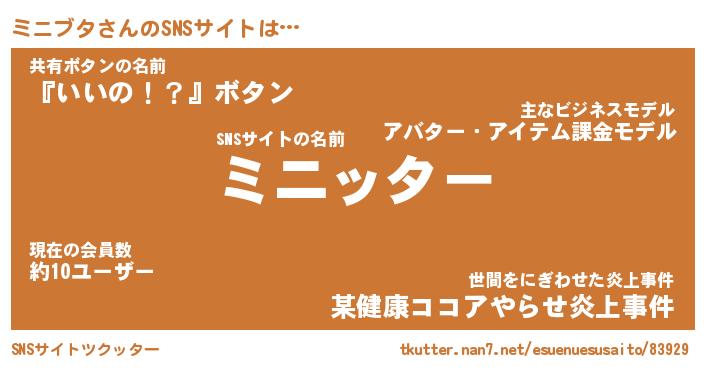 | 男性向けラノベタイトル風あだ名 | 『ミニブタアートオンライン』 |