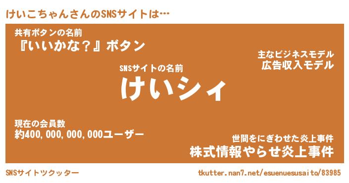| 女子向けラノベタイトル風あだ名 | 『(仮)けいこちゃんのやんごとなき事情』 |