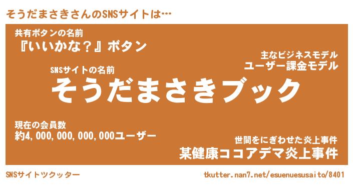 | 男性向けラノベタイトル風あだ名 | 『ソウダマサキアートオンライン』 |