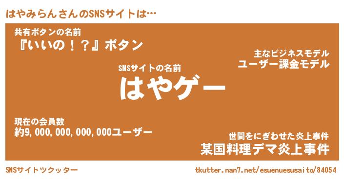 | 肩書あだ名 | 『はやみらん社長』『はやみらん総理大臣』 |